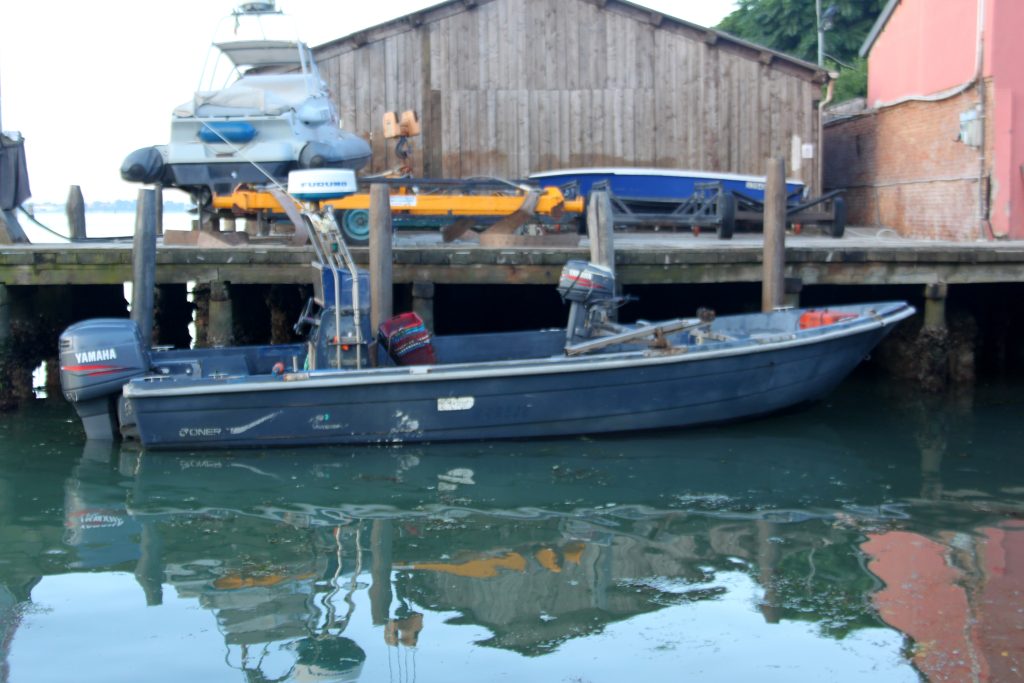 Imbarcazione di raccoglitori di vongole nella laguna veneta