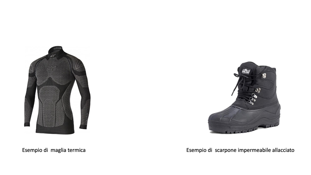 Per finire ai piedi meglio uno scarpone impermeabile dello stivale classico da nautica. Lo stivale standard è piuttosto freddo e spesso ha una suola piatta molto scomoda se si sta tante ore in piedi. Uno scarpone tipo montagna impermeabile è sicuramente da prediligere. Bisogna però fare attenzione a due cose: 1) non deve avere il classico carrarmato tipo vibram troppo scivoloso in barca, meglio una rigatura sottile; 2) possibilmente non di colore nero lascia dei segni sul piano di calpestio che, alcune volte, risultano difficili da rimuovere.