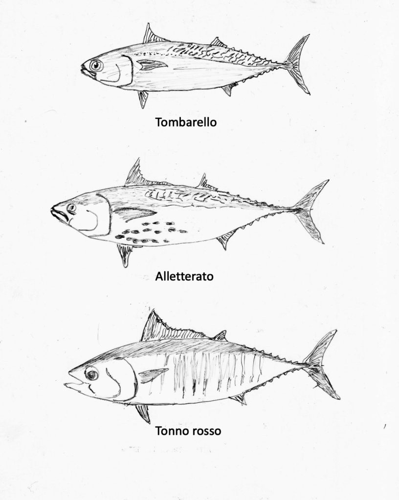 E’ frequente che nelle mangianze di pesci di piccole dimensioni si trovino: tonni rossi, tombarelli e alletterati tutti assieme. Saperli distinguere è importante per preservare la specie del tonno rosso, oltre ad evitare salate sanzioni.